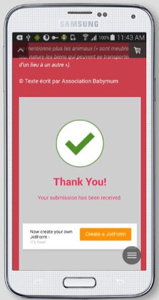 Votre formulaire est enregistré si cette image apparait et si vous recevez un mail de Jotform confirmant que votre formulaire est bien enregistré.
